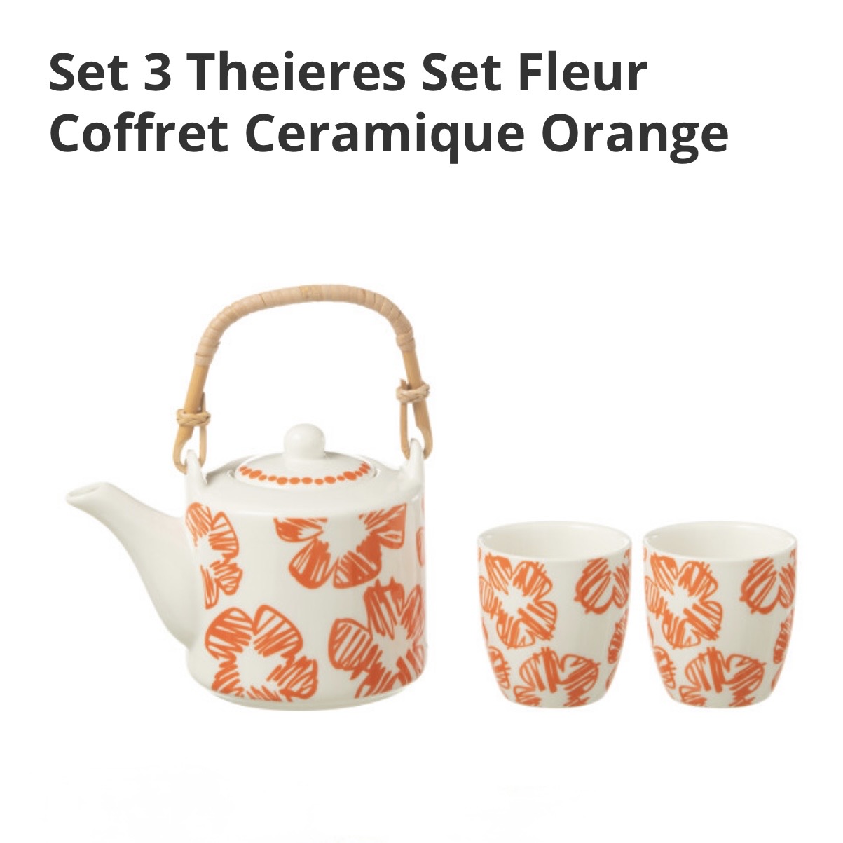 Coffret Théière + Tasses Céramique Fleur Orange