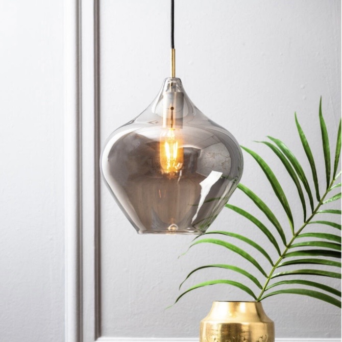 Suspension lekar bronze antique / verre fumé D16-26cm