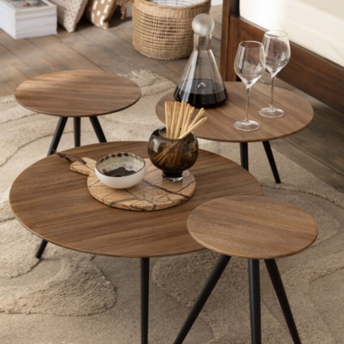 Set De 4 Tables Rondes Teck