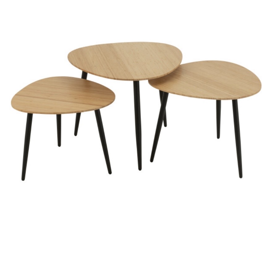 Set de 3 tables en bambou naturel/noir