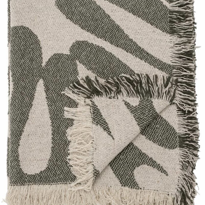 Couverture/ plaid coton recyclé beige/ kaki 130/160cm