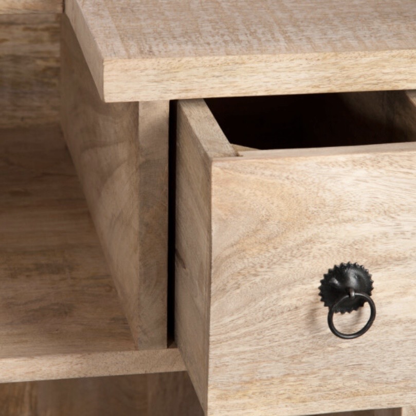 Bar à vins 2 tiroirs bois naturel L120cm/H108cm