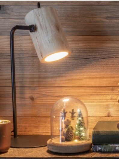 Photophore en métal doré avec socle en bois