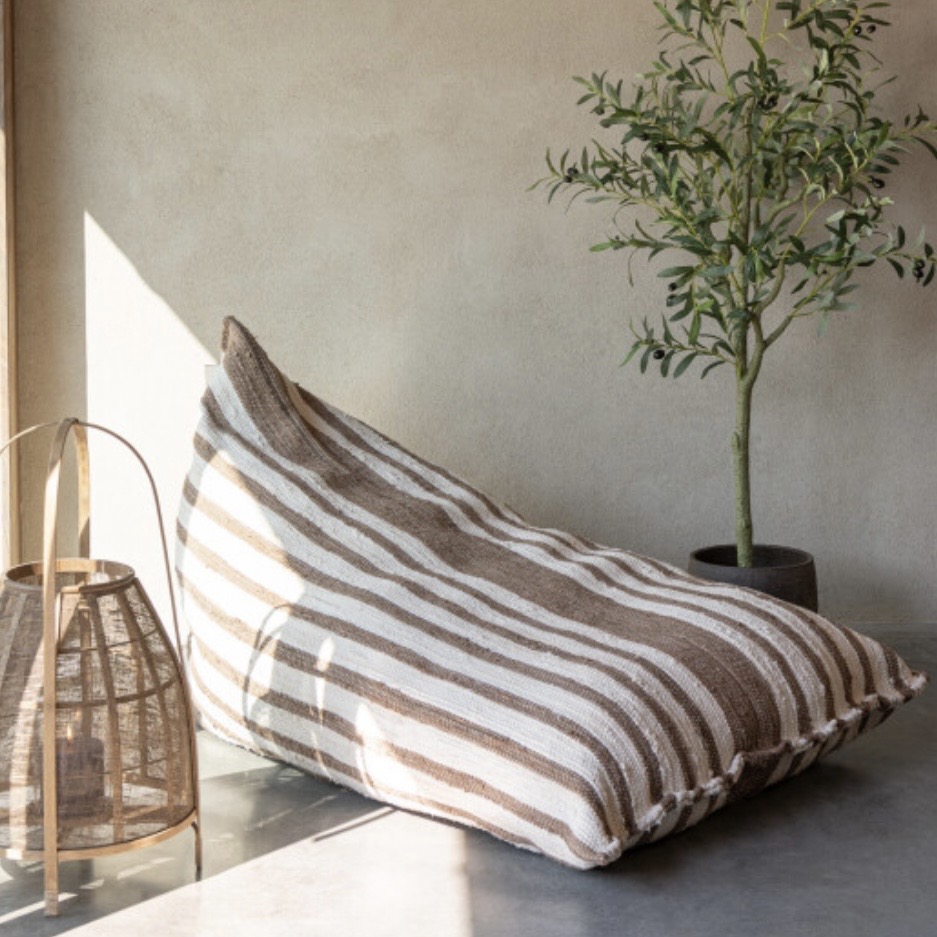ce pouf est multi usage, il convient aussi bien pour être dans une zone de relaxa près d ‘un sauna, une piscine, un chambre d ‘enfants, ( en coton recyclé) ne peut pas être laissé sous la pluie.