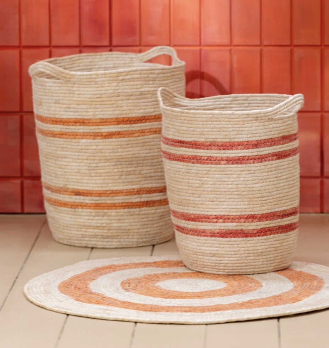 Set 3 Paniers à linges, Lignés Naturel/Orange