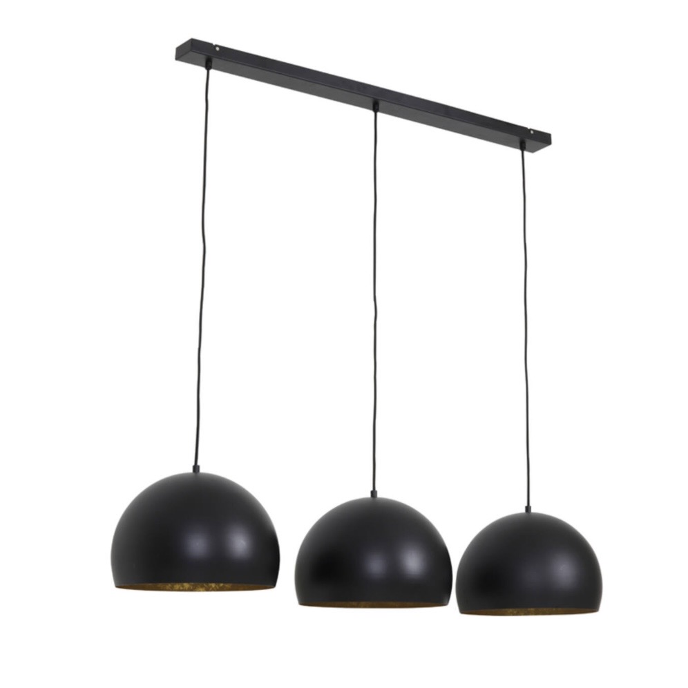 Suspension 3 lampes métal noir mat / or 120cm-D33-25cm