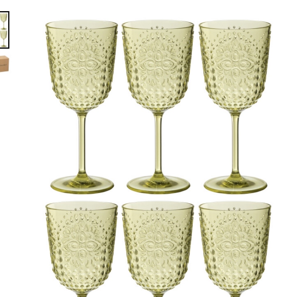 J-Line, set de 6 verres à vins coloris verts en plastique pour l extérieur